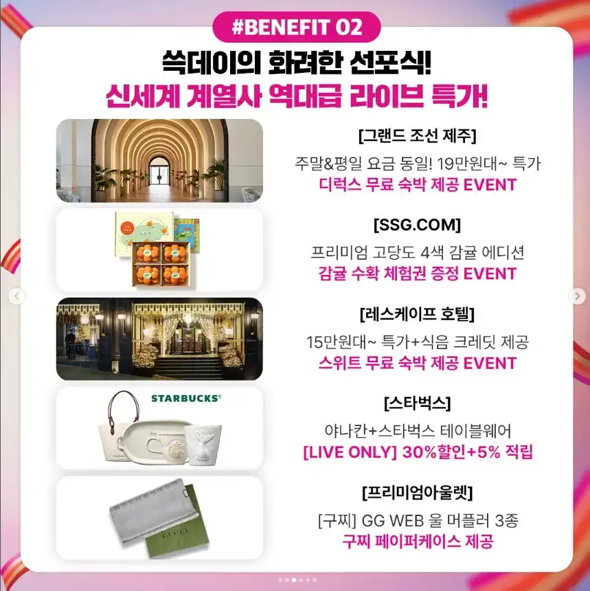 미리 구매할 상품을 계획하고 각 계열사별 사전 이벤트와 라이브 방송까지 활용하여 더 많은 혜택을 누려보세요.