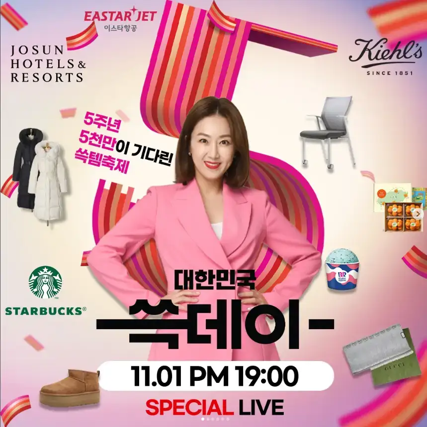 11월 1일 오후 7시부터 진행되는 쓱데이 5주년 스페셜 라이브 방송에서는 김지혜가 특별 진행자로 나서며 대표적인 특가 상품을 선보입니다.