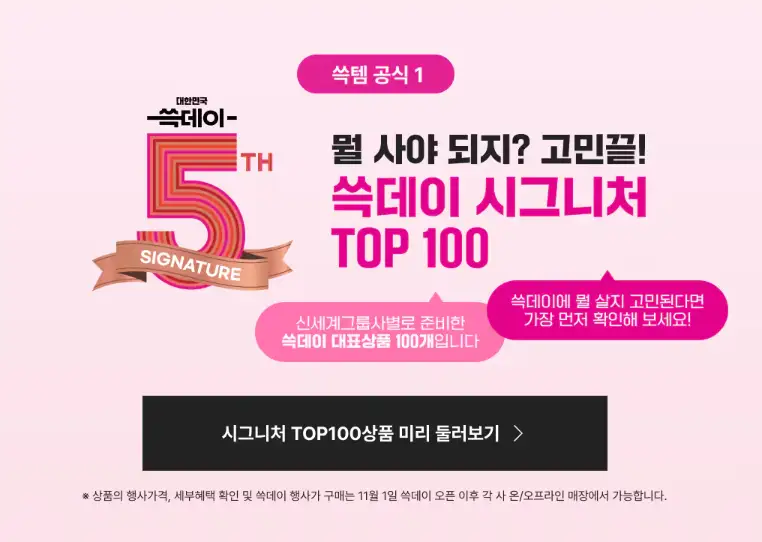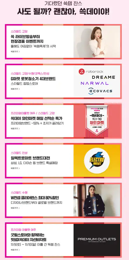 - SSG.com 및 G마켓 : 2024년 11월 1일(금) ~ 11월 10일(일)