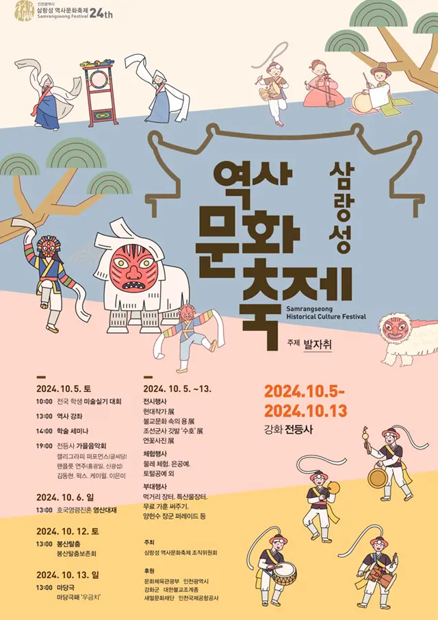 강화도 전등사에서 열리는 2024 삼랑성 역사문화축제가 10월 5일부터 10월 13일까지 개최됩니다.