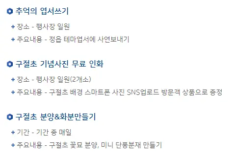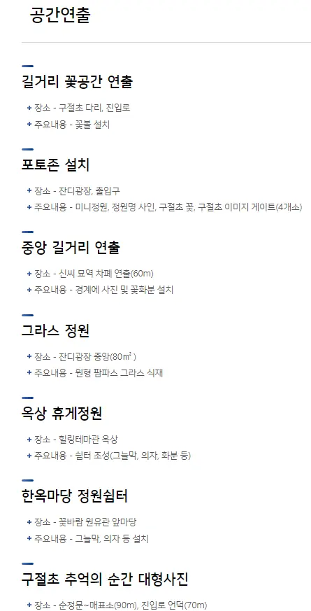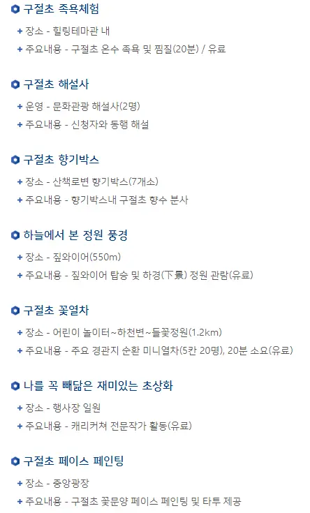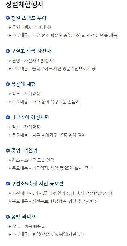 | 버스킹 | 잔디광장, 출렁다리 일대에서 상시 운영 |