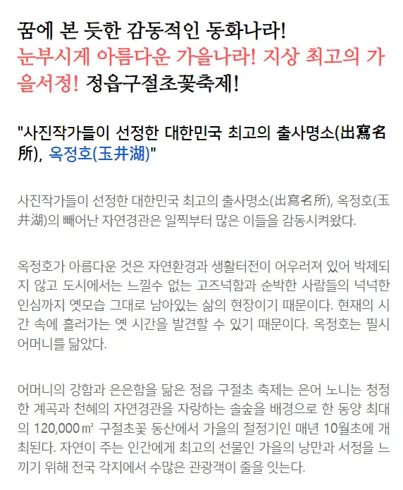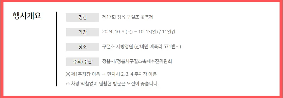 정읍 구절초 꽃축제 교통 및 주차 정보