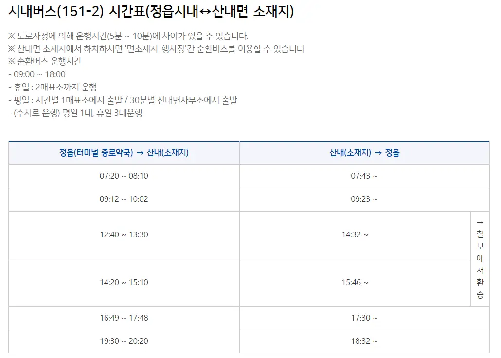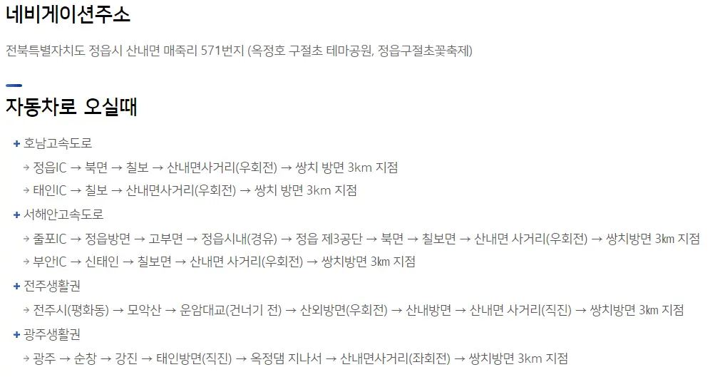대중교통: KTX 정읍역 하차 후 버스나 택시로 이동 가능합니다.