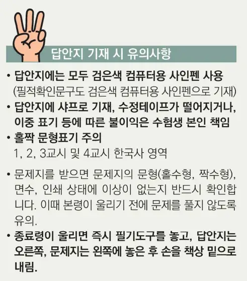 만약 부득이하게 지참한 경우에는 1교시 시작 전에 반드시 감독관에게 제출해야 합니다. 이를 소지한 채 발견되면 부정행위로 간주되며, 응시 자격이 정지될 수 있습니다.